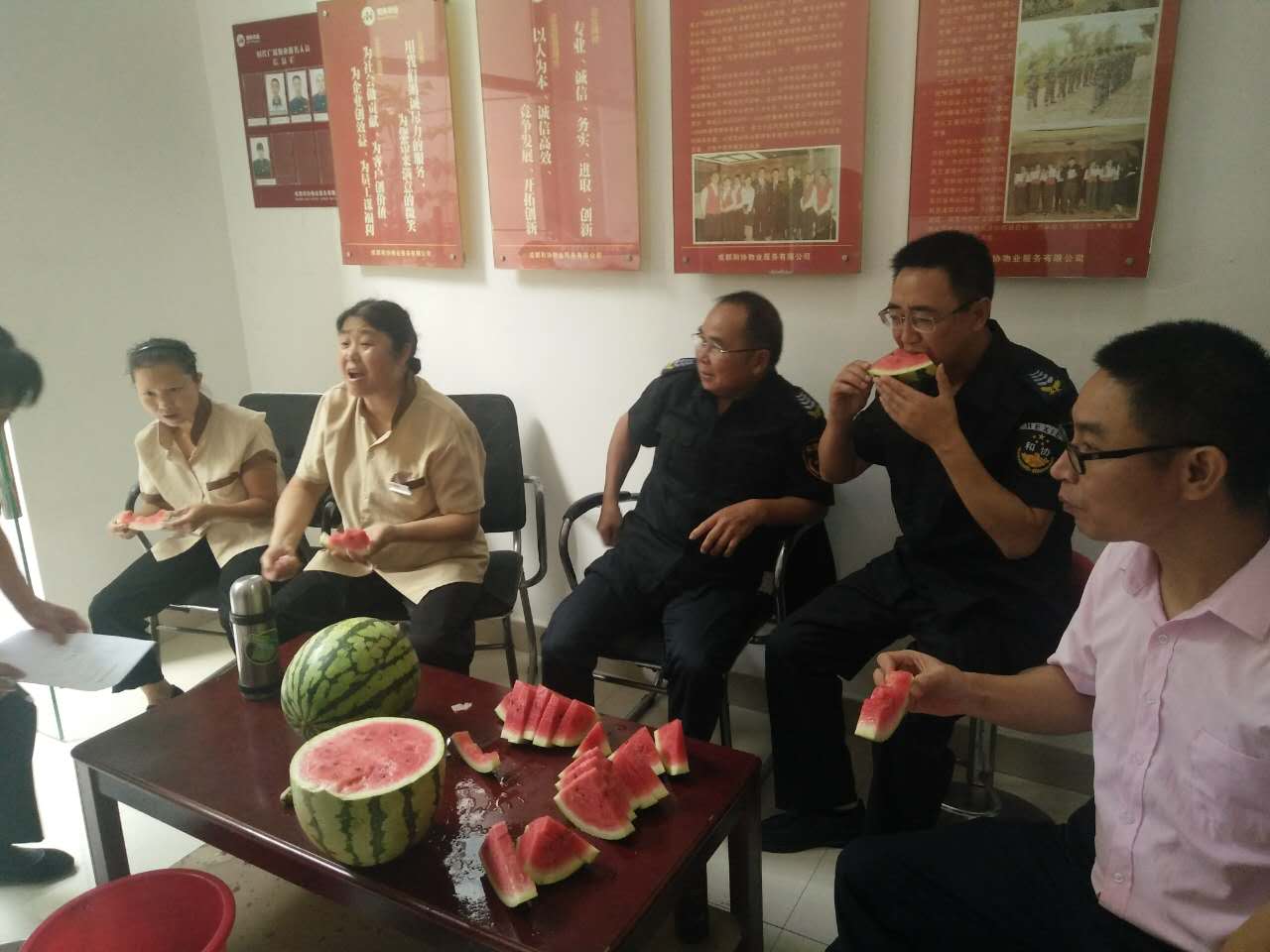 2017月8月1日,正是太陽最毒辣的時候,公司領(lǐng)導(dǎo)李總、楊總親自帶頭,逐一為每個項目的員工呈送西瓜、藿香正氣液等防暑降溫物品,并囑咐大家,一定要注意勞逸結(jié)合,愛惜身體,防止中暑。公司的關(guān)愛,讓員工們仿佛都忘記了高溫酷暑,內(nèi)心深處感到絲絲清涼,這清涼同時也潤入了員工心田。
