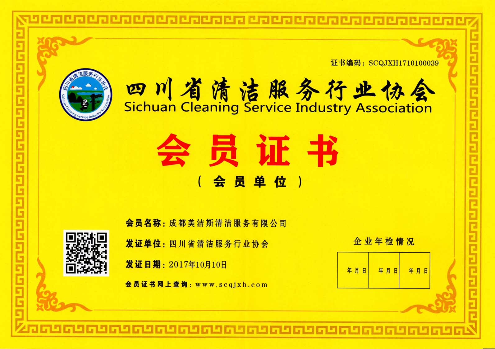 熱烈祝賀公司正式成為四川省清潔服務(wù)行業(yè)協(xié)會會員單位